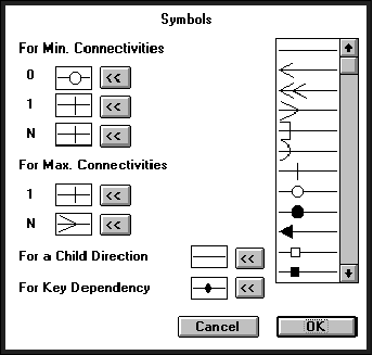 Рис. 5. Экран выбора символов для характеристик связей