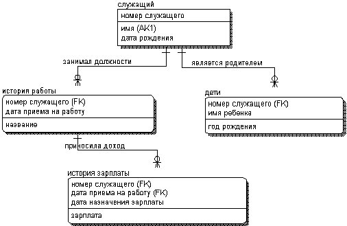 Проектирование модели в ERwin наглядно представляет ограничения ссылочной целостности в