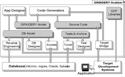 - генерацию приложения на любом языке, поддерживаемом семейством кодогенераторов GRINDERY (в настоящее время - Informix- 4GL, NewEra, SuperNova);