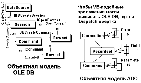 - OLE DB - набор стандартных интерфейсов: что должна уметь делать компонента обработки данных