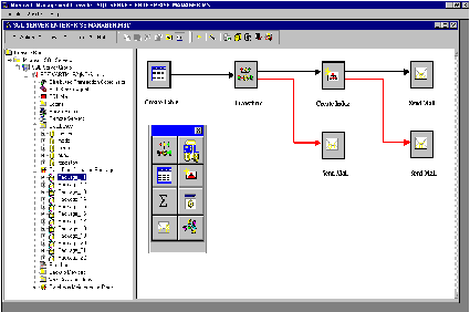 - Интегрирован с MMC, включает средства взуализации из Visual Data Tools (создание структуры, протягивание отношений, редактирование данных в таблицах по ходу дела, ...)