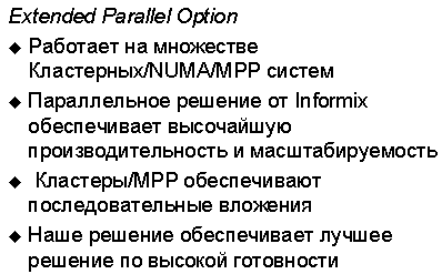 INFORMIX-Dynamic Server Решение: Extended Parallel Option