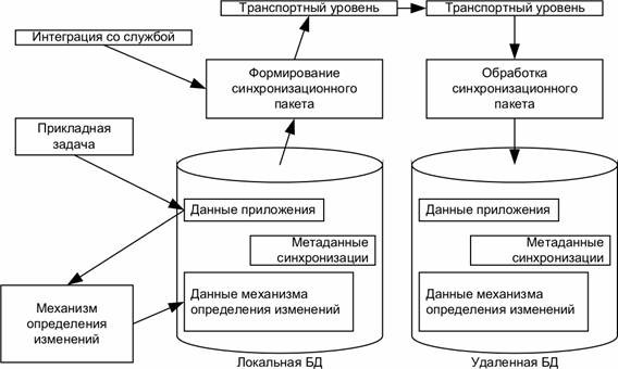 Рисунок 2. В режиме on-line клиент синхронизации устанавливает соединение с сервером синхронизации по одному из поддерживаемых on-line протоколов (TCP/IP, HTTP и т.д.). Затем формируется пакет синхронизации, передается на удаленный сервер БД и там обрабатывается. В зависимости от обстоятельств пакет синхронизации может содержать либо все данные (начальная синхронизация, восстановление после сбоев), либо данные, которые были модифицированы с момента последнего сеанса синхронизации с данным узлом. Модуль интеграции со службой каталогов определяет, какие именно таблицы и по каким условиям будут выгружены в удаленную базу. После успешной обработки пакета удаленной стороной в локальную базу возвращаются изменения, которые произошли в удаленной базе. На этом сеанс синхронизации завершается. В случае off-line протокола алгоритм обмена пакетами зависит от настроек DBSync. DBSync обеспечивает возможности обмена данными между синхронизируемыми базами данных при помощи следующих сетевых протоколов: • TCP/IP – наиболее быстрое и надежное решение. Обеспечивает дуплексную сессию синхронизации. При необходимости шифрации сообщений имеется возможность работать через SSL. • HTTP – аналогично TCP/IP обеспечивает получение подтверждений о приходе пакетов от базы-приемника, и сохранения пакетов не требуется. Серверная часть (принимающая соединения) реализована в варианте собственного сервера, понимающего подмножество http . Главным преимуществом при использовании этого протокола является возможность работы через Internet. • E-MAIL – Данный вариант обмена не гарантирует надежной доставки данных, но позволяет использовать любые возможности для отправки данных, т.к. e-mail является очень распространенным сервисом. • FILE – Имеет такие же ограничения, как и E-MAIL. Пакет синхронизации данных оформляется в виде файла. Доставка файла осуществляется по ftp, с помощью гибких носителей и т.п. В качестве прочих достоинств DBSync следует отметить: • работу с UNICODE; • формат сообщений XML; • простоту администрирования; • гибкость в конфигурировании. Драйверы и интерфейсыНаличие драйвера ODBC, стандартного интерфейса SQL CLI – норма для любой уважающей себя СУБД. ЛИНТЕР – не исключение. Стоит отметить, что драйвер ODBC (3.х) СУБД ЛИНТЕР существует для всех платформ, а не только для Microsoft Windows, и по сути своей является ещё одним универсальным API для разработки приложений. Это очень важный момент, обеспечивающий приложениям дополнительный уровень переносимости. Специально для версий ЛИНТЕР 6.x, в которых реализована поддержка национальных (да и вообще любых) кодировок, существует UNICODE ODBC-драйвер. Реализована полная поддержка ODBC esc-последовательностей. Для сокращения размеров приложений, рассчитанных на встроенные системы, возможно использование библиотеки с урезанной функциональностью. Большинство современных приложений разрабатывается с использованием объектно-ориентированных языков программирования. При работе на платформах Microsoft провайдер OLE DB СУБД ЛИНТЕР облегчит разработку программ в различных средах программирования, использующих компоненты ADO, например, в среде Visual Basic .