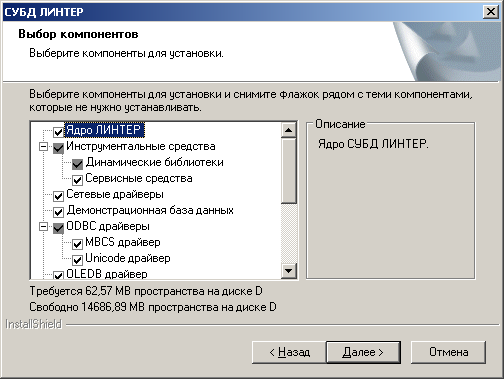 * - до 64К в версиях 6 и выше Установка ЛИНТЕРУстановкаДля установки СУБД необходимо: