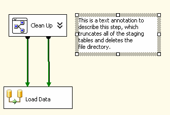 Рисунок 22 ПримечанияЕсли даже после логического группирования пакет все еще выглядит сложно для интуитивного понимания, или есть желание документировать какие-то его особенности, то можно добавить текстовые примечания непосредственно в тело пакета. В любом месте, куда хочется поместить текстовое окно, нужно нажать правую кнопку мыши и в меню выбрать Add Annotation. Редактор создаст текстовое окно, в котором можно непосредственно печатать и размер которого может менять по своему усмотрению. Также можно изменить шрифт, его размер и цвет, если, выбрав окно примечания, нажать правую кнопку мыши и выбрать в меню пункт Set Text Annotation Font. Также можно добавлять примечания и в Редакторе Data Flow, который мы рассмотрим ниже. На Рисунке 23 показан пример текстового примечания.