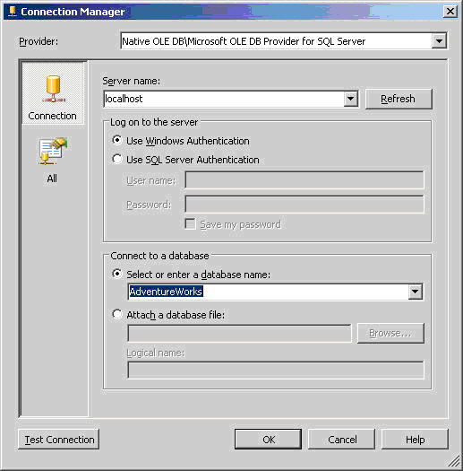 Рисунок 36 Для задачи можно установить имена удаленной и локальной директорий прямо из переменных внутри SSIS (см. Рисунок 37). Задача Message Queue Задача Message Queue была значительно усовершенствована по сравнению со своим аналогом из SQL Server 2000. Как и своя предшественница, эта задача может отсылать файлы данных или строковые сообщения в Microsoft Message Queue. В дополнение теперь можно отсылать в очередь и переменные SSIS. Также можно шифровать отсылаемые в очередь данные и использовать сертификаты для аутентификации. Вся мощь задачи Message Queue (см. Рисунок 38) проявляется в случае, когда используется передача сообщений из пакета в пакет для параллельного выполнения операций. Например, каждый из SSIS может управлять своим сегментом работы, а затем, после окончания подмножества работ, один раз сообщить об этом ведущему пакету. Другая область применения очередей сообщений - это распределенная среда, в которой каждый региональный офис обрабатывает свои данные и отсылает их для обработки на корпоративный сервер через очередь сообщений. Корпоративный SSIS пакет в этом случае слушает все региональные офисы для получения от них подтверждения того, что можно начать агрегирование данных. Задача Script Для многих разработчиков ETL систем одной из главных причин для миграции из SQL Server 2000 в SSIS может оказаться задача Script (в SQL Server 2000 DTS известная как ActiveX Script). Новая задача Script имеет богатый дизайнерский интерфейс (см. Рисунок 39) в Visual Studio, включая IntelliSense и раскраску ключевых слов в скрипте. Задача Send Mail Задача Send Mail (см. Рисунок 40) позволяет отсылать сообщения электронной почты пользователям или спискам рассылки. В отличие от аналогичной задачи SQL Server 2000, она теперь использует SMTP, а не MAPI. Это означает, что теперь нет необходимости в установке Microsoft Outlook® на SQL Server для работы этой задачи. Электронное почтовое сообщение можно непосредственно напечатать, используя интерфейс чем-то похожий на Notepad. Также в качестве тела сообщения можно использовать входной файл или переменную DTS. Задача SQL Server Analysis Services Execute DDL Новая задача SQL Server Analysis Services Execute DDL позволяет выполнить команду DDL для создания, изменения, удаления или обработки объекта Analysis Server. Можно выполнить DDL скрипт хранящийся либо непосредственно в задаче, либо в переменной, либо во внешнем для пакета файле. Задача SQL Server Analysis Services Processing Задача SQL Server Analysis Services Processing является потомком задачи Analysis Services Processing из SQL Server 2000, но обладает большими возможностями. Эта задача обрабатывает кубы и измерения Analysis Services, но вдобавок к этому теперь были добавлены уровни параллелизма, позволяющие одновременно обрабатывать множество объектов. Также можно задать каким образом должна происходить обработка ошибок в ваших ключевых полях. Необходимо также отметить, что эта задача не имеет обратной совместимости с кубами и измерениями SQL Server 2000. Задача Web Service Новая задача Web Service служит для вызова метода Web службы. После выполнения метода можно сохранять полученные от Web службы результаты в файл или переменную. Это может быть полезно для обмена информацией с программами других производителей. Например, можно использовать Web службу для получения обновленного списка продукции с Amazon. После этого этот список можно сохранить в базу для дальнейшего использования. Задача Web Service соединяется с Web службой с помощью HTTP Connection Manager. Он позволяет соединяться с Web сайтом 
