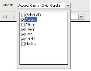 Для изменения порядка сортировки нет необходимости в повторном выполнении запросов к базе данных, так что эта возможность будет работать на снимках отчетов и отчетах в кэше. Эта возможность также включает поддержку сортировки по нескольким столбцам и сортировки внутри вложенных или сгруппированных данных. Параметры с несколькими значения (многозначные параметры)В SQL Server 2000 Reporting Services, в параметры отчета пользователи могли вводить только единственное значение. Например, если существует параметр под названием "цвет", он может принимать только одно из значений - "красный" или "синий". В SQL Server 2005 Reporting Services, автор отчета может указать, что параметр является многозначным. Например, на Рисунке 3, в качестве значения параметра выбираются несколько значений.