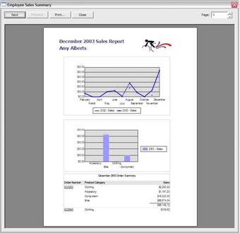 Рисунок 1 Пользователь может выбрать принтер и диапазон страниц для печати. При необходимости пользователь может изменить ориентацию страницы и размеры полей. При желании, пользователь также может выполнить предварительный просмотр страницы, чтобы увидеть, как будет выглядеть печатная копия (Рисунок 2). Рисунок 2 После того как пользователь будет удовлетворен результатом, задание печати формируется на сервере отчетов и пересылается через клиента на выбранный принтер. Пользовательская сортировкаВ SQL Server 2005 Reporting Services, автор отчета может добавить возможность изменения порядка сортировки данных в отчете для тех, кто будет просматривать опубликованный отчет.