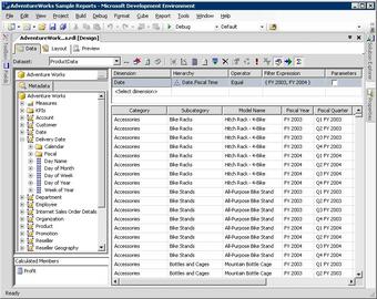 Рисунок 3 После того как пользователь выберет набор значений, механизм обработки отчета создаст корректный запрос с использованием синтаксиса SQL или MDX. Автор отчета также может определить для параметра набор значений по умолчанию. Разработчики могут программно передавать множества наборов параметров, используя URL Access или Web Services API. Пользовательские элементы отчетовSQL Server 2005 Reporting Services позволяет независимым производителям программного обеспечения (Independent Software Vendors, ISVs) и разработчикам расширять обработку отчетов с помощью создания пользовательских элементов отчетов. Пользовательские элементы отчетов (Custom report items) - это серверные элементы управления, которые могут быть внедрены в отчеты для создания дополнительной функциональности помимо встроенных элементов управления Reporting Services (textbox, line, image и так далее). Например, разработчики могут добавить шкалы, штрих-коды, карты и так далее. В Report Designer, эти элементы управления добавляются в Visual Studio Toolbox и имеют свои наборы страниц свойств и диалоговых окон. Пример пользовательского элемента отчета, индикатора, можно увидеть на Рисунке 4.Рисунок 4 Усовершенствования в Report DesignerТогда как новый клиент Report Builder (описываемый далее в этом документе) позволяет бизнес-пользователям легко создавать отчеты, Report Designer, основанный на Visual Studio продолжает оставаться наилучшим инструментом для IT-специалистов и разработчиков приложений. Для использования Report Designer в SQL Server 2005 больше нет необходимости в предварительной установке Visual Studio (VS) на рабочей станции. Если Visual Studio не установлена, будет установлена копия оболочки VS для работы Report Designer и других инструментов разработки SQL Server. Если у автора уже установлена Visual Studio, подобно тому, как это было в SQL Server 2000, Report Designer будет установлен как дополнительный модуль. В Report Designer внесено несколько усовершенствований, включая улучшенный редактор выражений. Улучшенный редактор выражений показан на Рисунке 5.Рисунок 5 Улучшенная интеграцияИнтеграция с существующими продуктами - это ключевая часть Reporting Services. SQL Server 2005 Reporting Services имеют улучшенные возможности интеграции с другими компонентами SQL Server, а также с Microsoft SharePoint Products and Technologies.Дизайнер запросов Analysis ServicesХотя в версии SQL Server 2000 Reporting Services была возможность интеграции данных, получаемых от SQL Server Analysis Services, не существовало механизма, позволяющего помочь пользователям в создании MDX-запросов. В SQL Server 2005, Visual Studio Report Designer содержит интегрированный дизайнер запросов для SQL Server 2005 Analysis Services (SSAS), который позволяет пользователям создавать запросы перетаскиванием серверных метаданных, и просматривать результат. Новый дизайнер MDX-запросов показан на Рисунке 6.Рисунок 6 Интеграция с SQL Server Management StudioХотя все еще возможно управлять SSRS с помощью Report Manager, SQL Server 2005 также включает возможность настройки и управления развертыванием Reporting Services с помощью Windows-инструмента SQL Server Management Studio. Как альтернатива Report Manager, основанному на Web, SQL Server Management Studio предоставляет единую точку управления всеми компонентами SQL Server, включая реляционные базы данных, Analysis Services, Integration Services и Reporting Services. Инструмент SQL Server Management Studio показан на Рисунке 7.Рисунок 7 SharePoint Reporting Web PartsSQL Server 2005 Reporting Services содержит набор Web Parts, которые упрощают интеграцию отчетов с SharePoint Portal Server 2003 или Windows SharePoint Services. На Рисунке 8 показаны Web Parts Report Viewer и Report Explorer.Рисунок 8 Широкие возможно