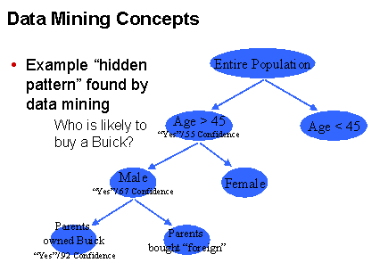 Комплект Oracle Data Mining Suite поможет выйти за пределы, доступные традиционным генераторам отчетов, которые сообщают только что произошло. А этот комплект проанализирует прошлое и использует его, как основу для предсказания будущего. Анализируя профили ваших лучших клиентов, Oracle Data Mining Suite поможет идентифицировать других людей, кто пока не являются вашими наиболее ценными клиентами, но соответствуют профилям тех, кто ими уже стал. Знание "стратегической ценности" клиентов - тех, кто могут стать ценными в будущем и тех, кто вряд ли станет такими, - является ключевым условием для активного управления бизнеса. Что такое Data Mining?Давайте рассмотрим, что такое Data Mining, и чем он дополняет и отличается от средств выдачи запросов и формирования отчетов, OLAP и других аналитических средств. "Попросту говоря, data mining обычно используется для обнаружения (скрытых) закономерностей в ваших данных для того, чтобы помочь вам принимать более лучшие деловые решения." Роберт Смолл, Two Crows Corporation Data mining помогает найти скрытые ранее закономерности и отношения в ваших данных для того, чтобы можно было принять более обоснованные решения. А теперь рассмотрим некоторые обшеизвестные определения. Средства формирования запросов и отчетов помогают выбрать информацию из базы или хранилища данных. Они вполне хороши при ответе на вопросы типа: "Кто покупал заемные ценные бумаги за последние 3 года?" Средства OLAP идут дальше этого, обеспечивая получение итогов, сравнений и предсказаний путем экстраполяции. OLAP хорош при проведении детализации (drill-down) для получения более подробных данных, таких как: "Каково распределение по доходу покупателей заемных ценных бумаг (mutual funds)?" Средства формирования запросов и отчетов, а также OLAP, хороши тогда, когда пользователю нужна детализация и понимание того, что произошло в прошлом. Data Mining идет дальше, анализируя прошлое для того, чтобы предсказать будущее. Data mining "углубляется" в данные, чтобы открыть полезные закономерности и нюансы, которые "погребены" в данных из-за огромного размера этих данных и сложности проблем. Data mining хорош при обнаружении тонких нюансов (detailed insights) и совершении индивидуальных предсказаний типа: "Кто, возможно, купит заемные ценные бумаги в следующие 6 месяцев и почему?" Средства формирования SQL-запросов и отчетов полезны при детализации данных . Если вы знаете, что ищете в своей огромной корпоративной базе данных, располагаете хорошим инструментом, хорошим аналитиком и у вас полно времени, вы постепенно найдете ответ. Средства OLAP и статистического анализа превосходны для извлечения информации с целью анализа и получения отчетов, но они могут отказать, когда объем данных становится чрезмерным для этих средств. Кроме того, когда вы имеете дело с более чем, к примеру, 25 входными переменными, техника традиционного статистического регрессионного анализа отказывает. Концепция Data miningData mining предлагает иной, "вверх дном" (bottom-up) подход. Data mining "просеивает" данные ("sifts" through the data), одну запись и одну переменную за один раз, раскрывая ранее скрытую информацию, которую, вы, наверное, раньше никогда не раскрывали, просто вследствие огромного количества данных. Разработаны масштабируемые инструменты data mining для решения этих сложных и больших, насыщенных данными и требующих большой вычислительной мощи проблем. Давайте рассмотрим п
