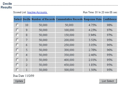 Пользователи CRM могут разрабатывать целевые кампании, выбирая кнопку "Audience" и отвечая на несколько простых вопросов. Для этих пользователей вся подготовка данных, анализ (data mining) и "зачет" ("scoring") данных производятся автоматически.