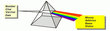 Рис. 2. Определяемые пользователями объектные типы позволяют использовать конструкции предметной области. Рассматриваемая система объектных типов существенно повышает уровень абстракции, на котором пишутся программы для работы с базами данных. Вместо оперирования типами данных NUMBER, CHAR и т.д., эти программы могут работать с конструкциями предметной области, такими, как Customer, Portfolio или Money. Из этого проистекают многие преимущества, не последним из которых является лучшее моделирование вашего бизнеса в базе данных. Объектные представленияС другой стороны, СУБД Oracle9i также позволяет пользователю рассматривать реляционные данные как объекты. Объектные представления (Object Views) позволяют синтезировать бизнес-объект из данных, которые продолжают храниться в реляционных таблицах. А именно, можно:
