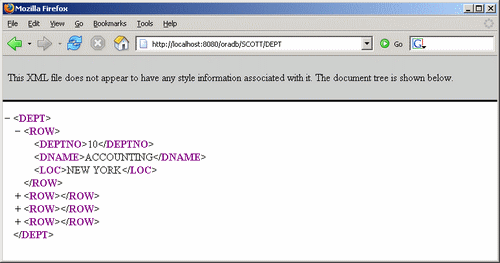 АннотацияУстановленная в БД XML DB позволяет средствами СУБД, без привлечений внешнего контейнера сервлетов, организовать сервлетный доступ к данным в базе. Фактически это означает возможность организовать для доступа к данным сервер web «внутри СУБД». В статье показано на примерах, как это можно сделать. ВведениеЭта статья является продолжением статей «XML DB - новое измерение в организации данных в Oracle», «Что дает репозитарий XML DB и как с ним работать» и «Как зарегистрировать схему XML в XML DB и как этим воспользоваться». Репозитарий XML DB обеспечивает возможность доступа к данным БД на основе технологии сервлетов HTTP/HTTPS. Конфигурацию сервлетов можно наблюдать и устанавливать в ресурсе-файле /xdbconfig.xml. Создавать сервлеты «внутри БД» можно на C и на Java, однако для первого случая фирма дает в распоряжение пользователям только готовый для употребления сервлет, а во втором - правила самостоятельного построения. Если говорить о реализации на Java, то это часть возможностей по организации работы СУБД с разнохарактерными программными элементами на Java, имевшихся в Oracle в версиях с 8.1 по 9.0, но выполненных на иной техлогической основе. Встроенный сервлет DBURIServletСервлет DBURIServlet написан на C и готов для употребления при установленном репозитарии по адресу /oradb/схема_БД/имя_таблицы[...]. Тем не менее он параметризован, и поэтому представляет интерес для конечных потребителей БД. Пример обращения: Правила формирования адреса соответствуют правилам типа DBURITYPE. Упражнение. Проверить работу сервлета DBURIServlet на следующих обращениях: http://localhost:8080/oradb/SCOTT/DEPT/ROW[DEPTNO='30'] Сервлет DBURIServlet имеет параметры: