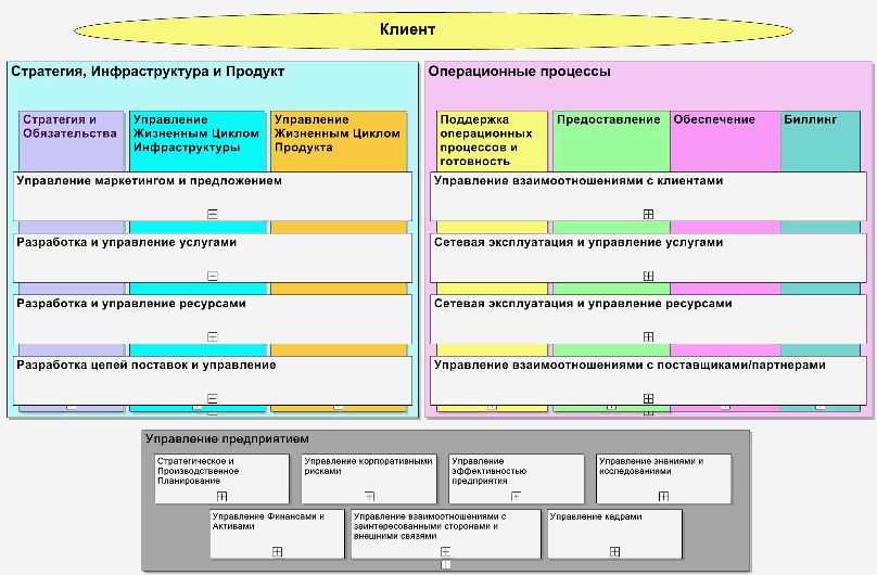 Декомпозиция бизнес-процессов 1-го уровня модели eTOM предприятия Телекома