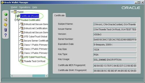 АннотацияРассматривается использование электронного бумажника Oracle Wallet для установления защищенных соединений СУБД с узлами интернета по протоколу TCPS и клиентских программ с СУБД по протоколу HTTPS. Защищенные соединения и сертификаты подлинностиВторая активная область использования электронного бумажника Oracle - поддержка защищенных соединений между СУБД и узлами интернет. Защита соединений между участниками интернет строится на использовании шифрования передаваемых данных, обычно по схеме публичной инфраструктуры ключей (PKI), а это требует передачи от одного участника к другому шифроключа. Риск постороннего вмешательства в такую передачу значительно выше, чем при обращении СУБД к локальной файловой системе, так что кроме собственно шифроключа участники передают друг другу еще специальное подтверждение подлинности, то есть «цифровой сертификат» (Public key certificate), дающий принимающей стороне уверенность, что шифр не подложный. Бумажник Oracle способен такие сертификаты хранить. Соединения участников сети могут быть двух типов: СУБД с другими участниками, когда она выступает в качестве клиента, и других участников (клиентских программ) с СУБД. Ниже приводятся примеры организации того и другого. Создание бумажника с сертификатамиПО Oracle позволяет создать пустой бумажник, и потом включить в него необходимые сертификаты подлинности. Однако программы owm (Wallet Manager), orapki, mkstore и mkwallet позволяют создать бумажник с некоторым начальным набором сертификатов. Первая из этих программ сумеет создать желаемый каталог для хранения файла бумажника сама, а остальные предполагают каталог уже имеющимся. Пример, для сервера: >set WALLETLOC=C:\oracle\product\10.2.0\db_1\NETWORK\wallet >mkdir %WALLETLOC% >mkstore -wrl %WALLETLOC% -create В диалоге потребуется указать придуманный пароль, например, по-прежнему amicus123. Заметьте, что в созданом каталоге образовались сразу два файла, что соответствует постоянно открытому бумажнику; это-то нам и требуется. Еще пример создания: >orapki wallet create -wallet %WALLETLOC% -pwd amicus123 Появился один файл ewallet.p12, но зато этой же программой можно ознакомиться с его содержимым: >orapki wallet display -wallet %WALLETLOC% -pwd amicus123 Наконец, создать бумажник и работать с его содержимым можно через Oracle Wallet Manager (меню Wallet ® New). При этом от следующего предложения придется отказаться: