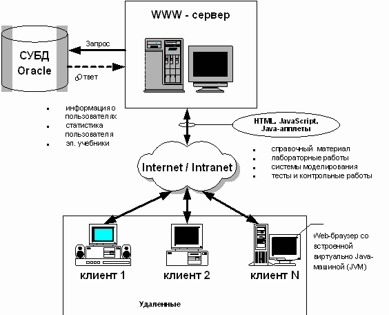Это является упрощенной схемой взаимодействия между броузером, сервером и сценарием CGI. Наибольшую популярность CGI - сценарии нашли при использовании в качестве обработчиков форм, средства доступа к базам данных, средства осуществления локального и глобального поиска, шлюзовых протоколов. Наибольшей мощью в реализации клиентского программного обеспечения обладают аплеты - программы написанные на языке JAVA. В узком смысле слова Java - это объектно-ориентированный язык, напоминающий C++, но более простой для освоения и использования. В более широком смысле Java - это целая технология программирования, изначально рассчитанная на интеграцию с Web-сервисом, то есть на использование в сетевой среде. Поскольку Web-навигаторы существуют практически для всех аппаратно-программных платформ, Java-среда должна быть как можно более мобильной, в идеале полностью независимой от платформы. С целью решения перечисленных проблем были приняты, помимо интеграции с Web-навигатором, два других важнейших постулата.