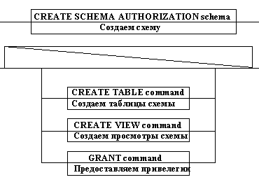 CREATE SCHEMA Создает несколько таблиц и представлений и предоставляет некоторые привилегии в одной транзакции.