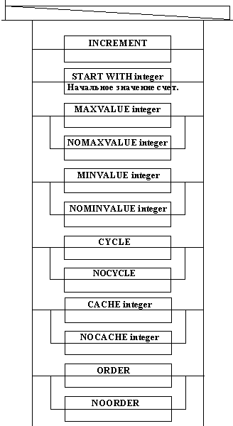 Пример: create sequence S_DOCTORS; Пример: Приведем полный текст скрипта для создания триггера для таблицы DOCTORS, который будет следить за автоматическим увеличением значения поля DC_NNN на единицу при добавлении каждой новой записи в таблицу DOCTORS, что потребует от нас использование и такой конструкции - как сиквенс (генератор последовательностей). -- Сначала удаляем предыдущие изменения в базе (если конечно они были сделаны) drop sequence S_DOCTORS; drop trigger tr_DC_NNN; drop public synonym DOCTORS; -- создаем таблицу -- назначаем права доступа -- создаем публичный синоним CREATE PUBLIC SYNONYM DOCTORS FOR DOCTORS; -- создаем сиквенс и устанавливаем его начальное значение в единицу create sequence S_DOCTORS start with 1; -- создаем индексы create unique index i_dc_nnn on doctors(dc_nnn); create index i_dc_name on doctors(dc_name); -- создаем триггер create trigger tr_dc_nnn before insert on doctors for each row begin select dc_nnn.nextval into :new.dc_nnn from dual; end; / Назад | Содержание | Вперед