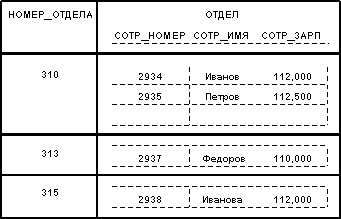 ![]() Можно сказать, что здесь мы имеем бинарное отношение, значениями атрибута ОТДЕЛЫ которого являются отношения. Заметим, что исходное отношение СОТРУДНИКИ является нормализованным вариантом отношения ОТДЕЛЫ: