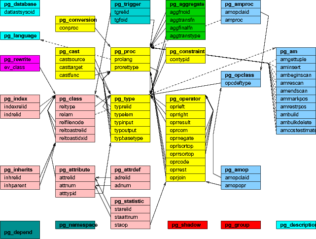 ER диаграмма системного каталога PostgreSQL