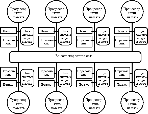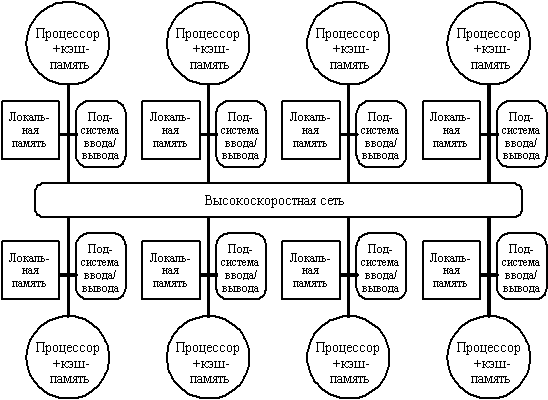 Рис. 3.33. Архитектура системы с распределенной внешней памяью и