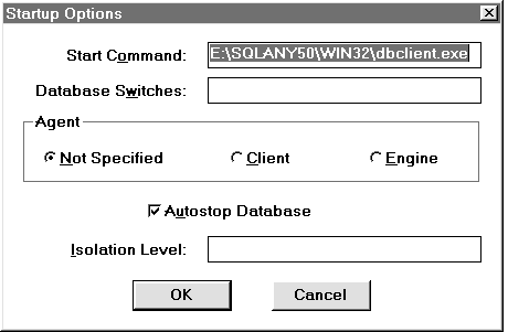 Рис. 16. Задание характеристик создаваемого ODBC-источника данных В рассматриваемом диалоговом окне поле Data Source Name предназначено для определения названия источника данных. В поле Description может храниться краткий комментарий к создаваемому источнику данных. Области Connection Information и Database Startup практически полностью соответствуют полному окну параметров соединения утилиты SQL Central (см. рис. 8). Исключение составляет реакция при щелке мыши по кнопке Options. При наступлении этого события открывается окно Startup Options (рис. 17).