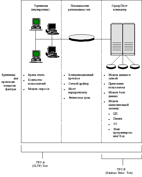 ![]() Рис. 3.2. Типовая среда обработки транзакций и соответствующие оценочные тесты TPC Таблица 3.1.