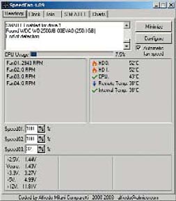 При помощи этой небольшой утилиты вы сможете не только контролировать температурный режим, но и управлять вентиляторами системы После того как система собрана, следует проверить температурный режим каждого из компонентов. Проще всего сделать это при помощи небольшой утилиты SpeedFan (рис. 1). Кстати, с ее же помощью можно регулировать скорость вращения любого из вентиляторов, установленных в системе. Требования к корпусуИтак, блок питания рассчитан, конфигурация системы определена, компоненты закуплены — осталось купить корпус и приступать к сборке. В принципе, ничего особо проблемного в выборе корпуса нет, стоит обратить внимание лишь на несколько пунктов: