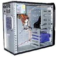 Выбрать корпус - нет ничего проще?Сергей Грицачук, Компьютеры+Программы (издательский дом "Комиздат") Тот, кто уверен, что покупка корпуса и выбор блока питания — дело последнее, глубоко ошибается. Потому что на самом деле ошибка в выборе корпуса способна привести к массе неприятностей, самая страшная из которых — полная или частичная потеря электронной начинки… Никто не станет оспаривать тот факт, что при сборке или апгрейде компьютера первоочередное внимание уделяется материнской плате, процессору, видеокарте и накопителям на жестких дисках и оптических носителях. Припомним также, что нередко бурное обсуждение вызывает выбор клавиатуры, мыши и печатающего устройства. Все это, конечно, хорошо и правильно, но при этом крайней редко должное внимание уделяется конструкции системного блока — а ведь правильный подход к выбору корпуса ПК не должен ограничиваться выбором цвета "коробки" и оценкой ее дизайна. На самом деле первоначально выбранный корпус может пережить не один апгрейд оборудования. Поэтому стоит заранее продумать четкую концепцию сборки, опираясь не только на текущие потребности, но и на грядущие расширения системы. Целое семейство "миниатюрных" ПК (barebone, microATX, flexATX, NLX и т.д.) построено на уникальных материнских платах, поставляемых в комплекте с корпусом и блоком питания. Чтобы получить полностью работоспособный компьютер, достаточно добавить к такому "конструктору" процессор, память и жесткий диск. Понятно, что в таком случае ни о каком подборе речь не идет. Поэтому мы будем рассматривать ситуацию, когда собираемый ПК относится к стандарту ATX и будет размещаться в корпусе типа "Tower" ("башня"). Итак, какие же требования должны предъявляться при выборе корпуса?
