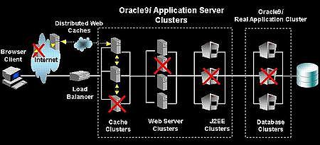 Кластеризация на базе Oracle9iAS позволяет архитекторам приложений защититься от серверных сбоев, независимо от того, где эти сбои имели место.