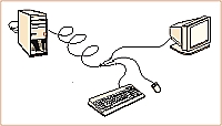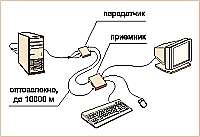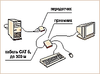 Типичный представитель славного рода KVM-удлинителей выглядит как многоголовая "гидра" из кабелей с одним разъемом VGA и двумя PS/2. Благодаря этой зверушке можно отнести консоль от системного блока метров на десять. Точнее это расстояние определяется экспериментально, в зависимости от качества компонентов и уровня электромагнитного фона. Если требуется большее удаление и есть возможность использовать кабель CAT5, лучшим выбором будут модели CAT5 Reach производства Raritan, Smart CAT5 Extander от Minicom или Single-Cat 5 KVM Extenders от Aten или MTI. Эти устройства обеспечивают удаление консоли на 100-300 м, в зависимости от разрешения, выставленного на мониторе, и частоты обновления кадров, качества кабеля CAT 5 и его монтажа. Главное "узкое место" при передаче - видеосигнал. Он передается без изменения формы, то есть в аналоговом виде и, следовательно, имеет широкий спектр частот. Поэтому недочеты монтажа и прокладки, дефекты кабеля CAT5 на больших расстояниях приводят к снижению качества изображения на экране монитора.