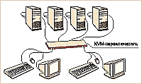 Гораздо качественнее, надежнее и безопаснее обеспечивают обмен данными с удаленной консолью оптоволоконные удлинители, такие как FiberReach II производства Raritan или Lightwave VDE/200 Fiber KVM Extender от Lightwave. Они обеспечивают работу консоли на расстоянии до 10 км от сервера с максимальной защитой информации от несанкционированного считывания и от электромагнитных шумов. Наконец, если судьба забросила пользователя дальше, чем на 10 км или нет возможности проложить оптику, вполне можно воспользоваться существующими локальными и глобальными компьютерными сетями. Подойдет обычное модемное соединение. Для этого потребуется маленькое устройство с большими возможностями - UltraLink от Rose Electronics, TeleReach от Raritan или Phantom от Minicom. Оно соединит консоль с сервером или ПК, реализуя защищенный 128-битным кодированием сеанс, где бы они ни находились и где бы ни находились вы - в командировке или в отпуске, на корабле или в поезде - да хоть в звездолете, лишь бы там была возможность подключиться к интернету. По порядку - рассчитайсь!KVM-переключатель (Konsole switch) - устройство еще более распространенное и необходимое, чем предыдущие. Его применяют для управления несколькими компьютерами с одной консоли. Особенно полезен KVM-переключатель программистам, которым приходится тестировать программное обеспечение одновременно на нескольких платформах; конструкторам вычислительных систем, которым он позволяет налаживать сразу несколько компьютеров; операторам на ответственных участках, которым в критических ситуациях нужно быстро переключаться с основной рабочей станции на резервную.