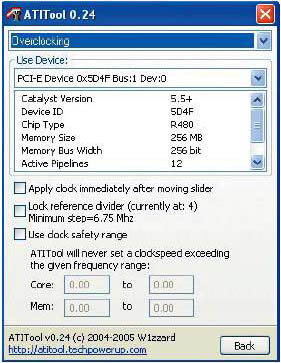 Производительность базовой версииДля начала нами были проведены тесты производительности карты Radeon X800 GTO2 в стандартной версии. Полученные результаты, в общем, ничем не отличаются от тех, которые гарантирует типичная Radeon X800 GTO. У карт идентичные параметры: тактовая частота процессора равна 400 МГц, а 256 Мб памяти GDDR3 работают с эффективной частотой 980 МГц. Но GTO2 все же дороже — и вот почему. Во-первых, GTO2, как уже упоминалось выше, дает практически стопроцентную гарантию того, что ее процессор действительно имеет 16 конвейеров рендеринга (которые используются после переделки). Во-вторых, в ней установлена более быстрая память Samsung со временем доступа 1,6 нс (а не 2,0 нс, как в X800 GTO). И, в-третьих, в версии 2 имеется 6-пиновый разъем питания, отсутствующий в обычной GTO. Добавляем отсутствующие конвейерыПотоки рендеринга — это один из основных элементов, влияющих на производительность карты. Особенно ярко это проявляется в тестах, проводимых с высокими разрешениями и при включенных функциях сглаживания кривых или фильтрации текстур. Чтобы разблокировать 4 недостающих конвейера рендеринга, достаточно перепрошить Radeon X800 GTO2 новым BIOS — разумеется, от карты X850 XT. Для выполнения этой операции необходимо следующее: