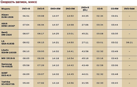 модель быстрее всех пишет DVD+R и DVD+R DL. Заметим также,