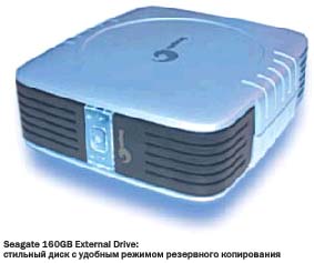Кнопка на Seagate 160GB External Drive запускает утилиту BounceBack Express производства CMS Products. К Ximeta NetDisk прилагается собственное базовое программное обеспечение под названием NetDisk SureSaver. Портативные жесткие диски поставляются без средств резервного копирования. В придачу к дискуМногие настольные внешние диски имеют дополнительные "примочки", совершенно несвойственные внутренним моделям. Самым щедрым в этом смысле оказался Western Digital Dual-Option MediaCenter с его двухпортовым концентратором USB 2.0 b устройством чтения карт памяти "восемь в одном" (есть также версия без кард-ридера, примерно на $40 дешевле). Ximeta NetDisk, кроме подключения к компьютеру через порт USB, подключается также к концентратору локальной сети по интерфейсу Ethernet. Для монтирования NetDisk и чтения данных может использоваться программное обеспечение, обычно устанавливаемое на компьютерах сети. В настоящее время Ximeta разрабатывает программные средства для одновременной записи на NetDisk данных с нескольких ПК. Походный винчестерКроме настольных внешних дисков, мы рассмотрели две портативные модели объемом по 40 Гб, удобные для работы в дороге, с ноутбуком или КПК.