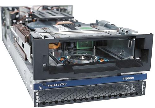 Особенность T10000 — возможность шифрования данных с помощью алгоритма AES-256 на уровне привода и размещения на картридже меток RFID, на которые записывается служебная информация В картриджах Т10000 применен новый тип ленты шириной 0,5 дюйма, где размещаются 768 дорожек для записи и 5 специальных дорожек для коррекции положения головки чтения/записи. К сожалению, изменение типа ленты сделало Т10000 несовместимым с его предшественником Т9940, но после выхода следующей версии формата в 2007 году картриджи T10000 можно будет отформатировать на 1 Тбайт. За счет применения новых технологий повышения надежности (например, комбинации механизмов исправления ошибок ECC и CRC) вероятность возникновения ошибок снизилась на порядок по сравнению с предыдущим поколением приводов StorageTek и равна теперь 10–19.