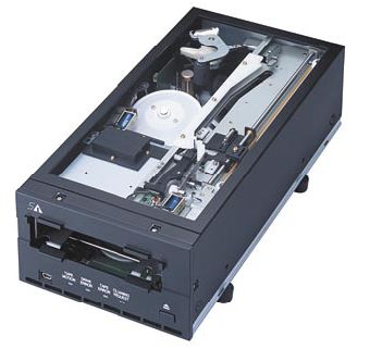 Современные технологии записи на лентуДмитрий Залужный, Денис Ладошкин"Экспресс Электроника" Существует огромное количество ленточных приводов и картриджей, но базовых технологий, применяемых во всех устройствах, всего две. Это линейная запись (запись с неподвижной магнитной головкой) и наклонно-строчная. Оба метода пришли из аналоговой магнитной записи. Суть линейной магнитной записи, LinearSerpentine, состоит в использовании широкой ленты (с большим числом расположенных по всей ее длине параллельных дорожек) и многоканальной магнитной головки. Лента протягивается лентопротяжным механизмом мимо головки. При этом считывается часть (группа) дорожек. При достижении конца ленты головка перепозиционируется на следующую группу дорожек, а лентопротяжный механизм реверсирует движение ленты (она движется обратно, и записываются/считываются другие дорожки). Процесс повторяется, пока не будут считаны или записаны все дорожки. Подобный метод записи называют серпантиновым. К устройствам с линейной магнитной записью относятся DLT/SDLT, LTO, SLR. Суть другого метода магнитной записи (наклонно-строчной, Helican Scan) заключается в том, что лента медленно (несколько сантиметров в секунду) протягивается мимо вращающегося с высокой скоростью цилиндра, на котором закреплены головки чтения/записи. За счет вращения блока головок получается высокая относительная скорость между лентой и головкой. Преимущества данного метода следующие. Так как абсолютная скорость движения ленты невелика, процессы старта и остановки занимают меньше времени и оказывают меньшие механические нагрузки на ленту. Следовательно, можно использовать более тонкие ленты (например новые металлонапыленные ленты AME). Помимо этого, при наклонно-строчной записи плотность расположения дорожек (измеряется количеством дорожек на 1 дюйм) в несколько раз выше, чем при линейной записи. Это результат применения специального механизма подстройки положения вращающегося барабана с магнитными головками и использования более совершенных носителей, а также того, что длина одной магнитной дорожки невелика. К устройствам с линейной магнитной записью относятся DAT/DDS, AIT, VXA. В настоящем обзоре мы рассмотрим наиболее интересные, на наш взгляд, устройства. DLT/SDLTФормат DLT разработан компанией Quantum. Устройства с технологией DLT появились на рынке в начале 1990-х годов. В настоящее время формат разделился на Super DLT (DLT-S) и Value-DLT (DLT-VS).SDLT 600Super DLT-устройства впервые были предложены рынком в начале 2000 года. Первый накопитель этой линейки, SDLT 220, обеспечивал сохранность 220 Гбайт данных (со сжатием) при скорости чтения/записи 22 Мбайт/с.В 2005 году компания Quantum выпустила последнее на нынешний день поколение устройств этого формата — SDLT 600. Накопитель позволяет сохранять до 600 Гбайт данных при скорости передачи до 72 Мбайт/с, почти вдвое превосходя своего предшественника, SDLT 320 (соответственно, 160/320 Гбайт, 16/32 Мбайт/с).