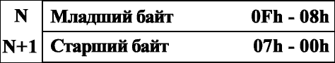 Рис. D.3.1 В Intel - совместимых компьютерах младшие байты располагаются в ячейках памяти с большими номерами (смотри рисунок D.3.1.) В отличие же от них в компьютерах Apple Macintosh старшие байты располагаются в ячейках памяти с меньшими номерами (рис. D.3.2.) Как и в Intel - совместимых компьютерах, выборка элементов осуществляется начиная со старшего байта.