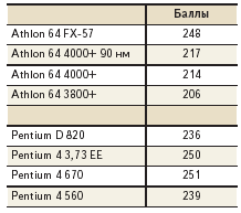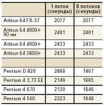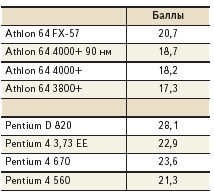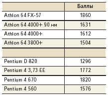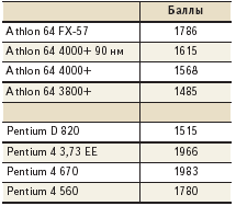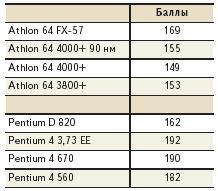 Эволюция + революция, или Пути развития современных процессоровАндрей Бондаренко, Компьютеры+ПрограммыНедавнее появление двухъядерных процессоров революционно уже хотя бы потому, что кардинально новые модели процессоров оказались дешевле сравнимых с ними по производительности предшественников. Оба основных производителя процессоров в последнее время регулярно радуют нас новинками. При этом фактически происходит развитие технологии в двух напрявлениях: в эволюционном (улучшение характеристик классических одноядерных процессоров) и революционном (выпуск новых многоядерных процессоров). При сегодняешнем уровне развития рынка оба направления оправданы и востребованы пользователями — прежде всего, в силу того что типично пользовательское программное обеспечение, такое как игры и офисные программы, слабо оптимизировано под многопоточное выполнение. Поэтому в ближайшее время две рыночные ниши для новых процессоров будут существовать паралельно — и достаточно четко разделятся по критерию создания/просмотра цифрового контента. На ПК, на которых контент (видео, аудио, моделирование, конструирование) создается, более оправданными будут многоядерные процессоры, а на клиентских и игровых ПК целесообразным будет использование обычных процессоров. В сегменте одноядерных процессоров компанией Intel не так давно были выведены на рынок новые модели с тактовыми частотами 3,8 ГГц. Речь идет о топовом Pentium 4 670 и более демократичной модели — Pentium 4 570. В сегменте же двухъядерных процессоров корпорация представила новый Pentium D 820 по очень привлекательной цене (около $250). Данная модель, по всей видимости, должна стать катализатором интереса к таким процессорам со стороны профессиональных пользователей. Каждое ядро Pentium D 820 работает на частоте 2,8 ГГц. Впрочем, в этой линейке есть и более быстрые процессоры (3,0 и 3,3 ГГц), но и стоят они уже от $550. Цель данного тестирования — оценить привлекательность Pentium D 820 для профессионального пользователя. Естественно, что в данный момент этот процессор не сможет проявить свой потенциал в играх и в ряде других чисто клиентских приложений — однако нас интересует выгоды использования Pentium D 820 для расчетов или создания цифрового контента. Собственно, этим и определялся выбор используемых тестов. Pentium 4 для сокета LGA775Серия процессоров Intel 6хх для сокета LGA775 состоит из моделей 630, 640, 650, 660 и 670, тактовые частоты которых лежат между 3,00 и 3,80 ГГц. Все они имеют 2-мегабайтный кэш L2, используют FSB с частотой 800 МГц и поддерживают технологию Hyper-Threading. Кроме того, в серии 6хх реализована поддержка 64-битных- расширений команд EM64T, а также технологий SpeedStep (энергосбережение) и XD (защита от атак типа "переполнение буфера"). Представленные еще в июне 2004 г. Pentium-4 500-й серии имеют такие же тактовые частоты, однако кэш L2 для них составляет 1 Мб. Нет также поддержки технологий EM64T и SpeedStep. С конца прошлого года 500-е модели со степингом E0 поддерживают технологию XD. На это указывает индекс "J" в конце номера процессора. С июня 2005-го линейка процессоров 5х0 была модернизирована до линейки 5х1. Новые модели 521, 531, 541, 551, 561 и 571 по-прежнему имеют частоты от 2,8 до 3,8 ГГц, однако теперь дополнительно поддерживают технологию EM64T. Pentium DДвухъядерные процессоры Pentium D — это два независимых ядра, объединенных на одной кремниевой пластине. Каждое ядро имеет со
