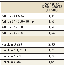 И опять при определении максимальной пропускной способности вычислений Pentium D 820 значительно опережает все классические процессоры. Lightwave 3D 8.2Один из популярнейших инструментов для работы с 3D-графикой, программа Lightwave версии 8.2 хорошо оптимизирована под Pentium 4. Она может работать как используя набор команд SSE2, так и разбивая работу на оптимальное число параллельных потоков. Тестирование в этой программе мы провели как в однопоточном, так и в многопоточном (8 потоков) варианте.
