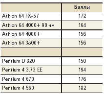 Чтобы гарантировать одинаковые тестовые условия, все системы оснащались видеокартой MSI GeForce 6800 GT в PCI-Express (драйвер ForceWare 67.66, DirectX 9.0c) с 256 Мб памяти GDDR3 и SerialATA-винчестером Maxtor MaxLine III 250 Гб. |