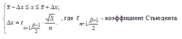 Кроме того, рассчитывалась дисперсия выборки среднего и доверительный интервал измерений с коэффициентом надёжности β = 95%: