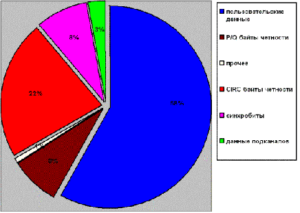 Рисунок 1 "Табель о рангах" – схема распределения объема лазерного диска по различным структурам. Как видно, на пользовательские данные отводится немногим более половины общего дискового пространства.
