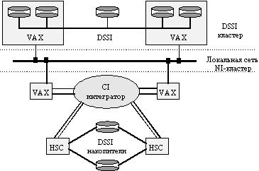 Компьютеры VAX могут объединяться в кластер также посредством локальной сети