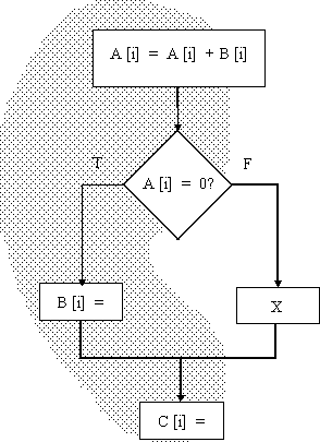 В обоих случаях перемещение операции присваивания переменной B приведет к тому, что некоторая команда i (либо в X, либо далее в программе) станет зависимой по данным от этой перемещенной команды, а не от более ранней операции присваивания B, которая выполняется перед циклом и от которой i первоначально зависела. Поскольку это приведет к изменению результата программы, операция присваивания B не может быть перемещена в случае, если справедливо любое из приведенных выше условий. Можно представить себе более изощренные схемы: например, в первом случае перед оператором if можно сделать теневую копию B и использовать только эту теневую копию в X. Такие схемы в общем случае не используются, поскольку, во-первых, их сложно реализовать, и, во-вторых, поскольку они будут замедлять программу, если выбранная трасса не оптимальна и завершение операций требует выполнения дополнительных команд. Для перемещения операции присваивания C на место сразу за первым условным переходом требуется, чтобы она переместилась выше точки объединения трассы (входа трассы) с направлением else. Это делает команды для C зависимыми по управлению от условного перехода и означает, что они не будут выполняться, если выбран путь else, который не находится на трассе. Поэтому будут затронуты команды, которые были зависимыми по данным от присваивания C и которые выполняются после этого кодового фрагмента. Для обеспечения вычисления корректного значения для этих команд делается копия команд, которые вычисляют и присваивают значение C на переходе на трасе, а именно в конце X на пути else. Мы можем переместить C из ветви then перехода через условие перехода, если это не воздействует ни на какой поток данных в условии перехода. Если C перемещается на место перед проверкой условия if, копия C в части else перехода может быть ликвидирована. Все рассмотренные методы: разворачивание цикла, планирование трасс и программная конвейеризация стараются увеличить степень параллелизма уровня команд, который может использоваться машиной, выдающей для выполнения более одной команды в каждом такте. Эффективность каждого из этих методов и их удобство для различных архитектурных подходов являются наиболее горячими темами, которыми активно занимаются исследователи и разработчики высокоскоростных процессоров. Аппаратные средства поддержки большой степени распараллеливанияМетоды, подобные разворачиванию циклов и планированию трасс, могут использоваться для увеличения степени доступного параллелизма, когда поведение условных переходов достаточно предсказуемо во время компиляции. Если же поведение переходов не известно, одной техники компиляторов может оказаться не достаточно для выявления большей степени параллелизма уровня команд. В этом разделе представлены два метода, которые могут помочь преодолеть подобные ограничения. Первый метод заключается в расширении набора команд условными или предикатными командами. Такие команды могут использоваться для ликвидации условных переходов и помогают компилятору перемещать команды через точки условных переходов. Условные команды увеличивают степень параллелизма уровня команд, но имеют существенные ограничения. Для использования большей степени параллелизма разработчики исследовали идею, которая называется "выполнением по предположени