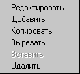 Для выполнения любого действия на конкретном контексте, нажмите правой клавишей мыши на контексте. Откроется следующее меню (Это меню появляется всегда при нажатии правой клавишей мыши, даже если нет выделенных контекстов. В этом случае будут доступны только опции Добавить и Удалить.)