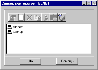Окно контекстов Telnet