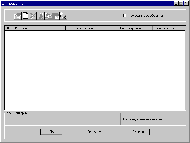 Окно настройки защищенных каналов