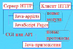 В этом высказывании следует обратить внимание на второе предложение. Если речь идет о сервер-приложениях, то здесь ничего нового относительно обычной Web-технологии, которая представлена на рисунке 1, нет. Приложения Java, как и как и любое другое выполняется сервером, как API-приложение или CGI-скрипт. А вот в случае Java байт-кода приведенное высказывание просто ошибочно, т.к. байт-код выполняется именно на рабочей станции пользователя, а не на компьютере сервера.