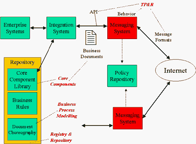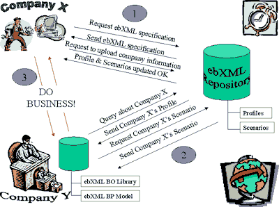 На рис.1 представлено взаимодействие основных компонентов ebXML при осуществлении бизнес-транзакций.